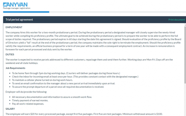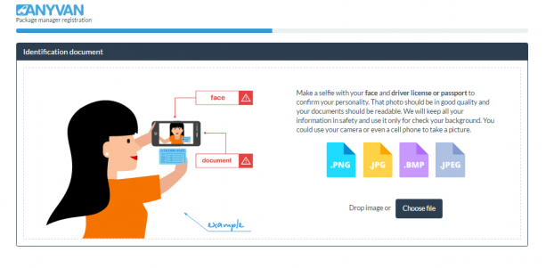 Yes they changed websites again! Northstarrecruitments.com was just registered anonymously on 8/19/17 and it goes to their “Anyvan” Package manager registration page for the trial period agreement! If you click “I Agree” it takes you to the page where the “employee” is required to upload an Identification Document that says: “Make a selfie with your face and driver license or passport to confirm your personality. That photo should be in good quality and your documents should be readable. We will keep all your information in safety and use it only for check your background. You could use your camera or even a cell phone to take a picture.”
