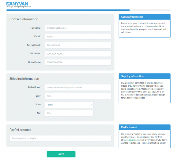 AnyVan Company Package Manager Reshipping Job Scam
