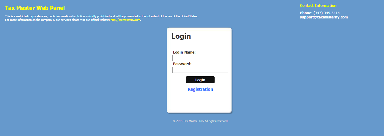 Beware! Another suspected fake Income Tax Preparation website has just popped up on our scam radar at http://taxmasterny.com! The domain was just registered on 04/07/2015 and the website created 04/08/2015 on Vooservers in the UK at IP address 91.227.223.95.